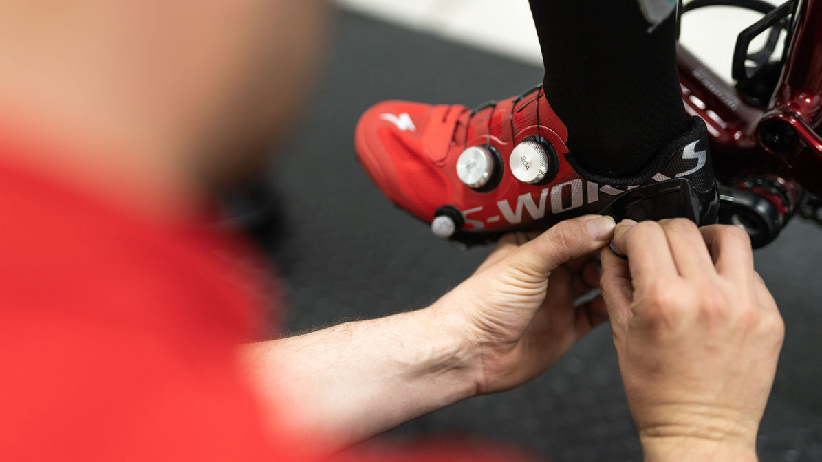 El punto de apoyo con la bicicleta comienza en los pedales. Realizamos un ajuste milimétrico de las calas para optimizar la transferencia de potencia, prevenir sobrecargas musculares y mejorar la alineación de rodillas, tobillos y caderas.